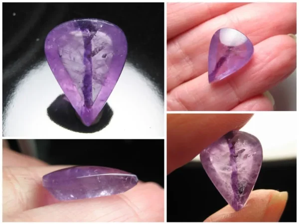 • Color and appearance: Rare gemstone bicolor Amethyst. Unusual darked line. The reason for this rare formation is unknown.